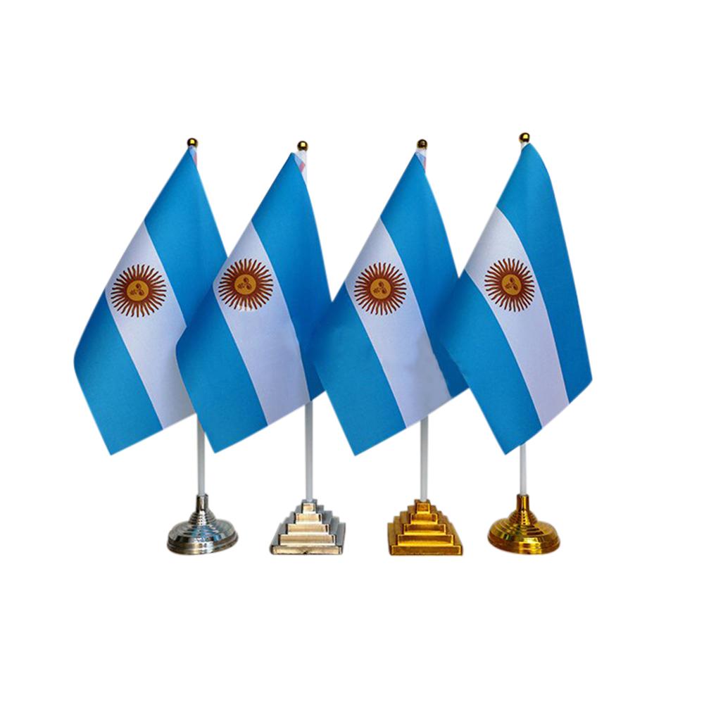 Ecco la bandiera da tavolo dell'Argentina. Questa bellissima bandiera argentina da tavolo è perfetta per aggiungere un tocco di stile alla tua casa, ufficio o per utilizzarla in eventi o riunioni. È dotato di una base metallica per garantire la massima stabilità. La bandiera da tavolo è realizzata con materiali di alta qualità. Presenta un design vivace che attirerà l'attenzione di tutti.