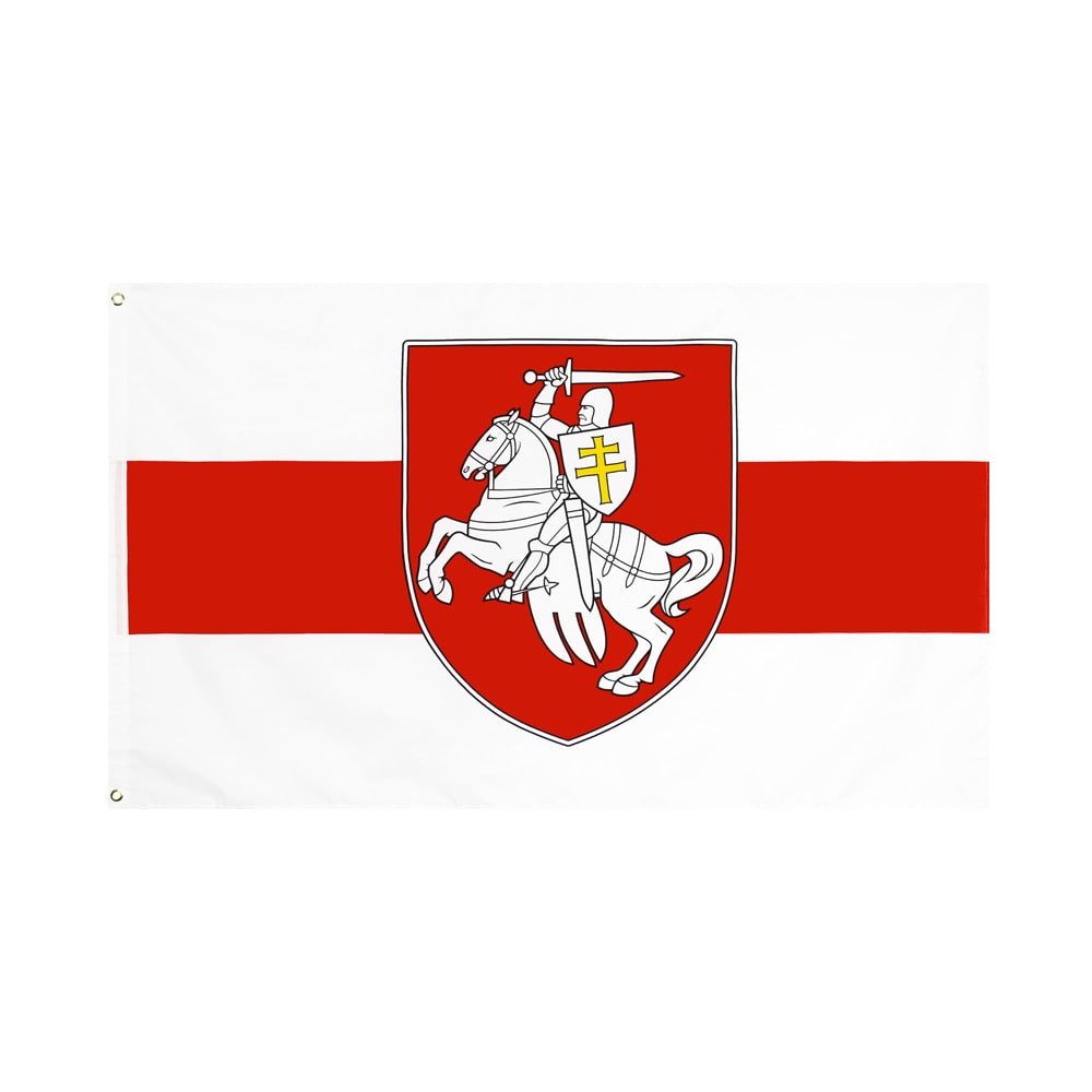 Scopri questa bandiera della Bielorussia rossa e bianca con lo stemma al centro della dimensione 60 x 90 cm. Fabbricata in poliestere resistente, questa bandiera bielorussa è progettata per durare nel tempo. Presenta bellissimi colori vivaci che non mancheranno di attirare l'attenzione. Inoltre, è dotata di due occhielli metallici per un facile sospensione.