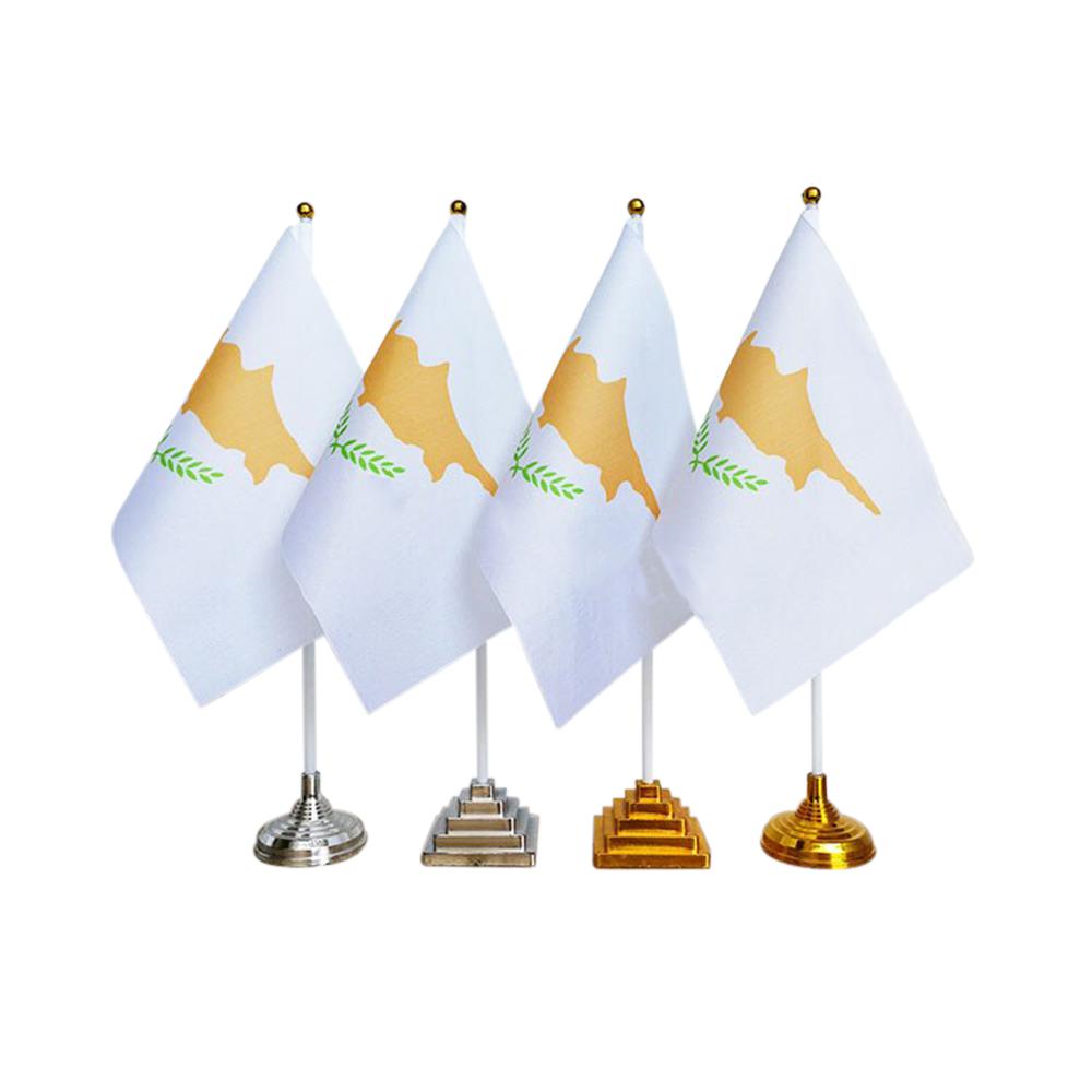 Ecco la bandiera da tavolo di Cipro. Questa splendida bandiera cipriota da tavolo è perfetta per aggiungere un tocco di stile alla tua casa, al tuo ufficio o da utilizzare in occasione di eventi o riunioni. È dotata di una base per garantire un'ottima stabilità. La bandiera da tavolo è realizzata con materiali di alta qualità. Presenta un design vivido che attirerà certamente l'attenzione di tutti.