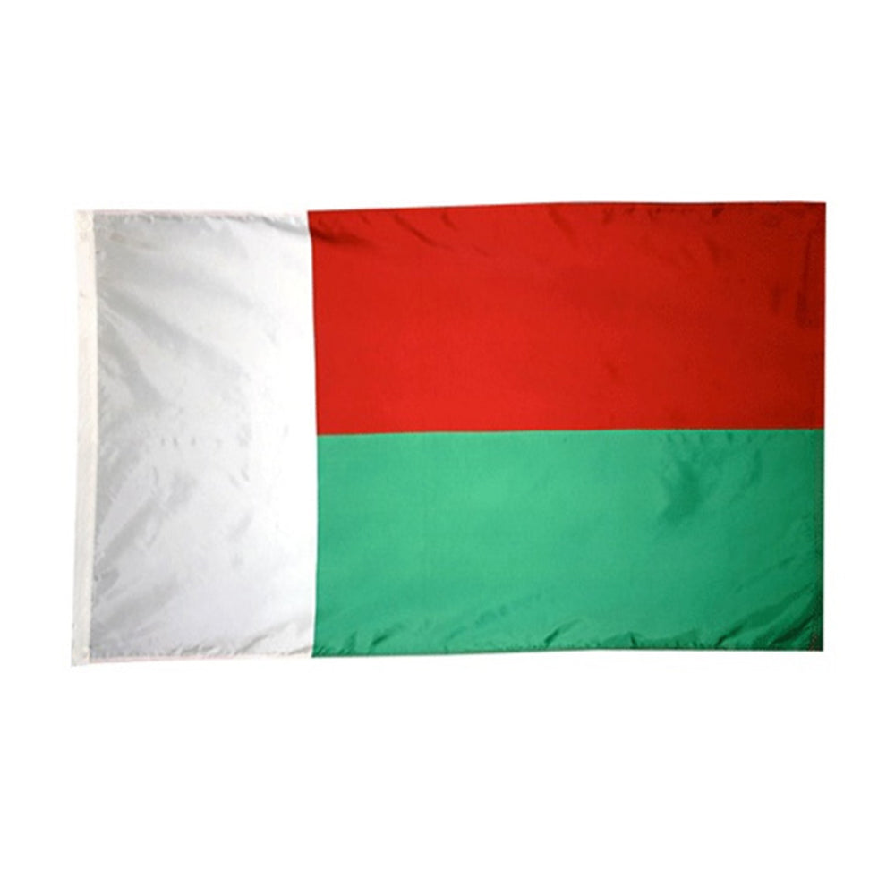 Ecco la bandiera del Madagascar con la sua fodera. Questa bandiera splendidamente realizzata è perfetta per mostrare il tuo orgoglio nazionale.