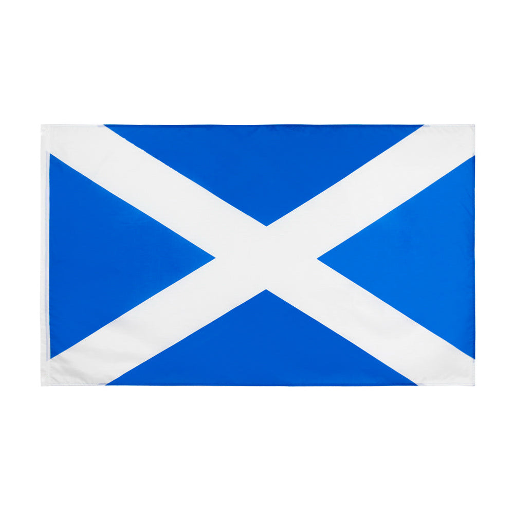 Ecco la bandiera della Scozia con la sua asta. Questa bandiera magnificamente realizzata è perfetta per mostrare il tuo orgoglio nazionale.