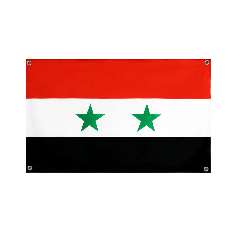 Ecco la bandiera della Siria con 4 occhielli. Questa bellissima bandiera è perfetta per mostrare il tuo orgoglio nazionale. I 4 occhielli permettono di appenderla facilmente e garantiscono un'ottima stabilità, assicurando che rimanga al suo posto. Che tu la faccia sventolare durante un evento sportivo o la esponga a casa tua, questa bandiera non passerà inosservata. Quindi mostra il tuo sostegno con la bandiera della Siria con 4 occhielli.