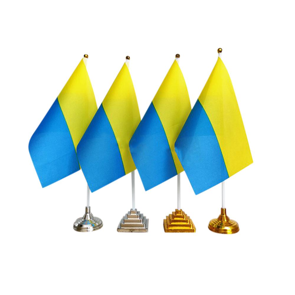 Ecco la bandiera da tavolo dell'Ucraina. Questa magnifica bandiera ucraina da tavolo è perfetta per aggiungere un tocco di stile alla tua casa, al tuo ufficio o per essere utilizzata durante eventi o riunioni. È dotata di una base per garantire la massima stabilità. La bandiera da tavolo è realizzata con materiali di alta qualità. Presenta un design vivido che sicuramente attirerà l'attenzione di tutti.