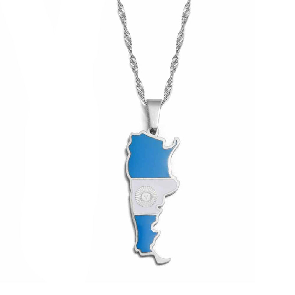 Scopri questa magnifica collana color argento con la bandiera dell'Argentina. La collana è realizzata con materiali di alta qualità ed è disponibile in due lunghezze di catena diverse, così puoi trovare la misura perfetta. Che tu la indossi come un promemoria quotidiano del tuo patrimonio o che l'abbinassi ai colori del tuo paese per un look festoso, questa collana è certa di fare la sua figura. Quindi non esitare e mostra con stile il tuo orgoglio nazionale con questa magnifica collana con la bandiera argentina. Puoi anche consultare i nostri altri prodotti se desideri ottenere un bandiera argentina.