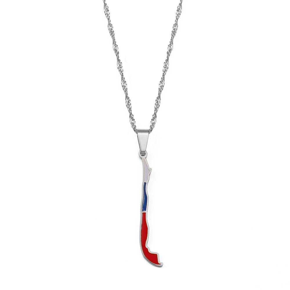 Scoprite questa magnifica collana color argento con la bandiera del Cile. La collana è realizzata con materiali di alta qualità ed è disponibile in due diverse lunghezze di catena, così che potrete trovare la misura perfetta. Indossatela come un promemoria quotidiano del vostro patrimonio, o abbinatela ai colori del vostro paese per un look festivo, questa collana è sicura di fare la sua figura. Non esitate e mostrate il vostro orgoglio nazionale con stile grazie a questa magnifica collana con la bandiera del Cile. Potete anche dare un'occhiata ai nostri altri prodotti se desiderate ordinare una bandiera cilena.