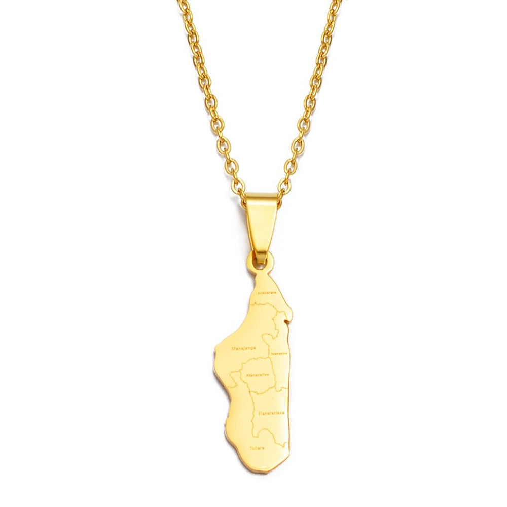 Scopri questa magnifica collana color oro con la mappa del Madagascar. La collana è realizzata con materiali di alta qualità ed è disponibile in due diverse lunghezze di catena, così che tu possa trovare la dimensione perfetta. Che tu la indossi come un promemoria quotidiano del tuo patrimonio o che la abbinassi ai colori del tuo paese per un look festoso, questa collana è sicura di fare la sua figura. Quindi non esitare e mostra con stile il tuo orgoglio nazionale grazie a questa magnifica collana del territorio malgascio. Potete anche consultare i nostri altri prodotti con l'immagine della bandiera del Madagascar.
