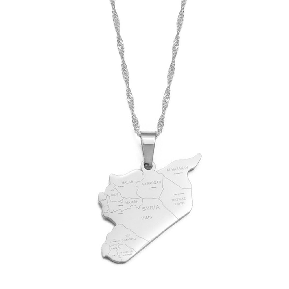 Scopri questa magnifica collana color argento con la mappa della Siria. La collana è realizzata con materiali di alta qualità ed è disponibile in due diverse lunghezze di catena, così da poter trovare la misura perfetta. Che tu la indossi come un promemoria quotidiano della tua eredità o che la abbini ai colori del tuo paese per un look festoso, questa collana è sicura di fare la sua figura. Quindi non esitare e mostra con stile il tuo orgoglio nazionale con questa magnifica collana della mappa della Siria.