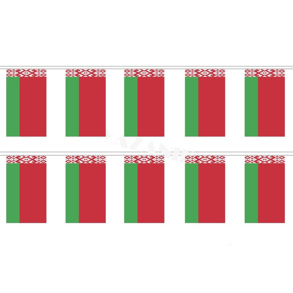 Scopri questa ghirlanda composta da 20 mini bandiere della Bielorussia. Questa splendida ghirlanda è un ottimo modo per decorare la tua casa o preparare un evento. La ghirlanda misura 5 metri di lunghezza ed è composta da 20 mini bandiere. Ogni bandiera ha dimensioni di 14 x 21 cm. Le bandiere sono fatte con materiali di alta qualità, quindi puoi essere sicuro che questa ghirlanda durerà per anni. Mostra il tuo sostegno per la Bielorussia con questa bellissima ghirlanda di bandiere oggi!