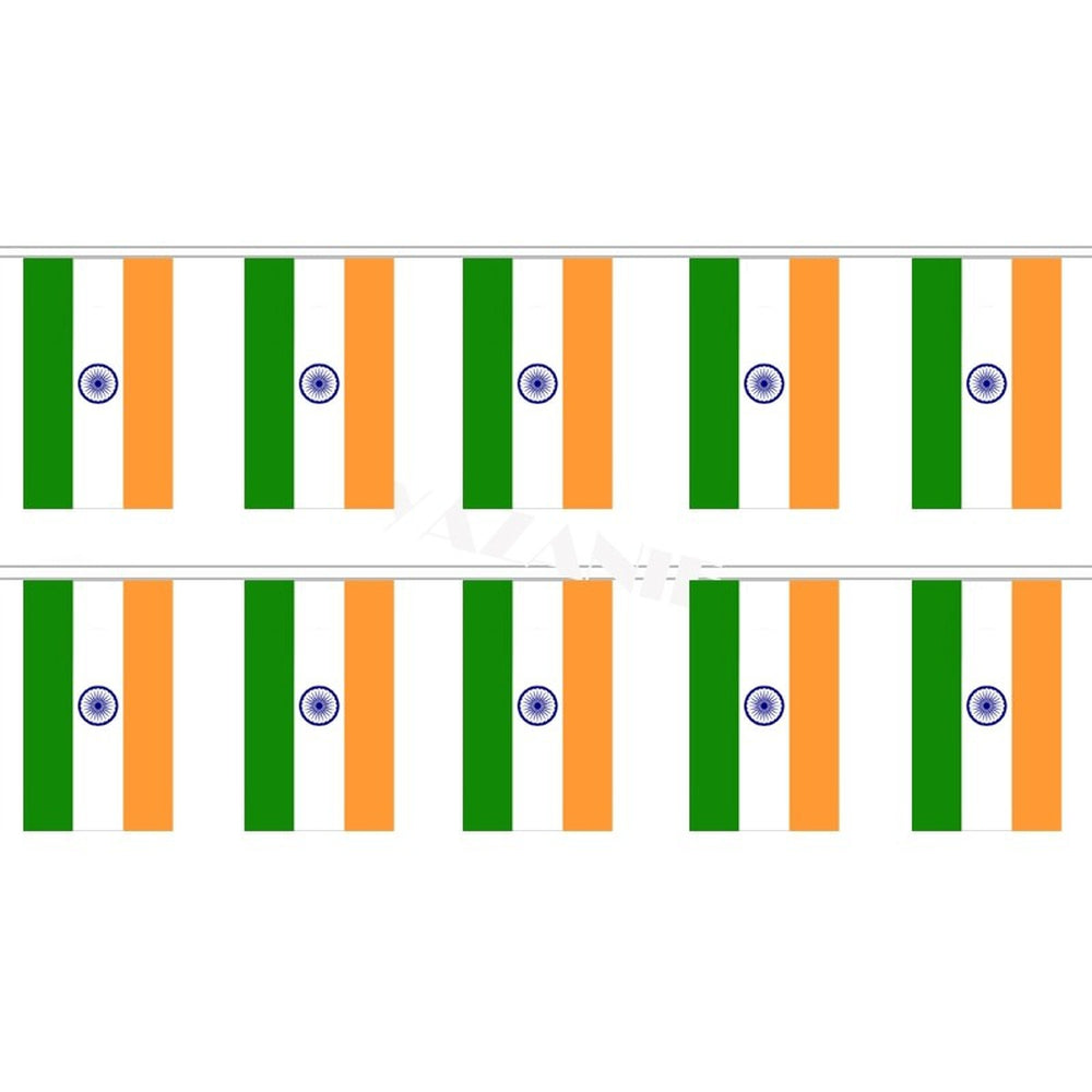 Scopri questa ghirlanda composta da 20 mini bandiere dell'India. Questa magnifica ghirlanda è un ottimo modo per decorare la tua casa o preparare un evento. La ghirlanda misura 5 metri di lunghezza ed è composta da 20 mini bandiere. Ogni bandiera ha dimensioni di 14 x 21 cm. Le bandiere sono fabbricate con materiali di alta qualità, quindi puoi essere certo che questa ghirlanda durerà anni. Mostra il tuo sostegno per l'India con questa magnifica ghirlanda di bandiere da oggi!