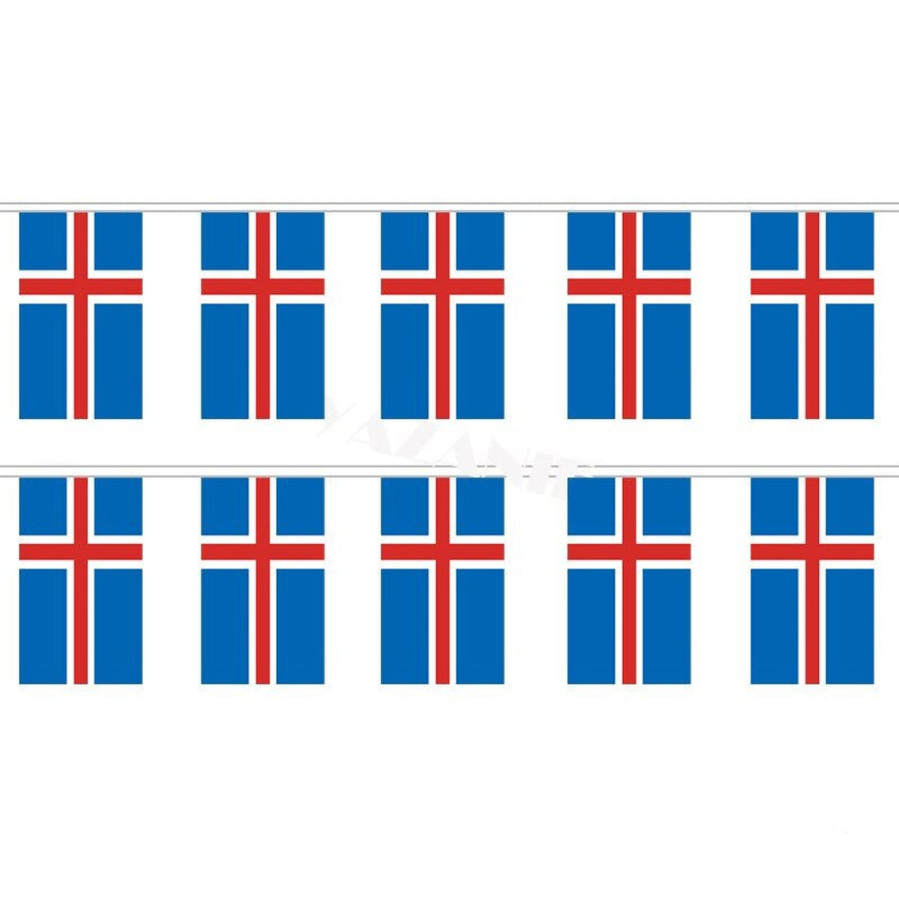 Scopri questa ghirlanda composta da 20 mini bandiere dell'Islanda. Questa splendida ghirlanda è un ottimo modo per decorare la tua casa o per preparare un evento. La ghirlanda misura 5 metri di lunghezza ed è composta da 20 mini bandiere. Ogni bandiera ha le dimensioni di 14 x 21 cm. Le bandiere sono realizzate con materiali di alta qualità, quindi si può essere sicuri che questa ghirlanda durerà per anni. Mostra il tuo sostegno per l'Islanda con questa splendida ghirlanda di bandiere oggi!