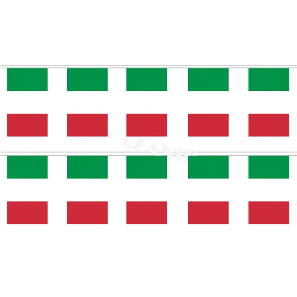 Scopri questa girlanda composta da 20 mini bandiere d'Italia. Questa magnifica girlanda è un ottimo modo per decorare la tua casa o preparare un evento. La girlanda misura 5 metri di lunghezza ed è composta da 20 mini bandiere. Ogni bandiera ha dimensioni di 14 x 21 cm. Le bandiere sono fatte con materiali di alta qualità, quindi puoi essere sicuro che questa girlanda durerà anni. Mostra il tuo sostegno per l'Italia con questa magnifica girlanda di bandiere oggi!