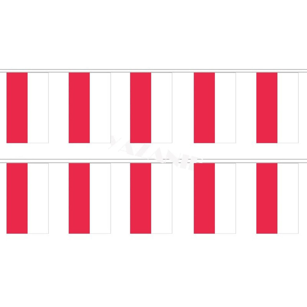 Scopri questa ghirlanda composta da 20 mini bandiere della Polonia. Questa splendida ghirlanda è un ottimo modo per decorare la tua casa o preparare un evento. La ghirlanda misura 5 metri di lunghezza ed è composta da 20 mini bandiere. Ciascuna bandiera ha dimensioni di 14 x 21 cm. Le bandiere sono realizzate con materiali di alta qualità, quindi puoi essere sicuro che questa ghirlanda durerà anni. Mostra il tuo sostegno per la Polonia con questa magnifica ghirlanda di bandiere oggi stesso!