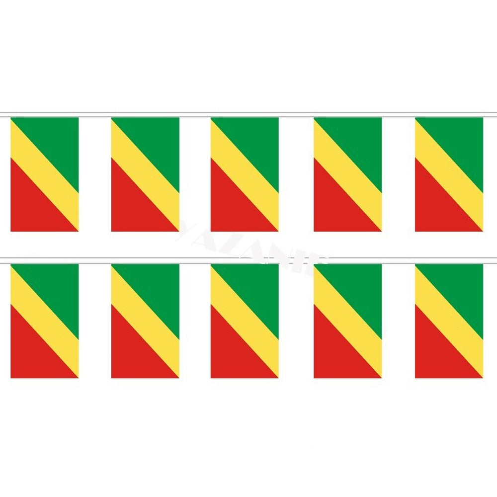 Scopri questa ghirlanda composta da 20 mini bandiere della Repubblica del Congo. Questa magnifica ghirlanda è un ottimo modo per decorare la tua casa o per preparare un evento. La ghirlanda misura 5 metri di lunghezza ed è composta da 20 mini bandiere. Ogni bandiera ha dimensioni di 14 x 21 cm. Le bandiere sono realizzate con materiali di alta qualità, quindi puoi essere sicuro che questa ghirlanda durerà anni. Mostra il tuo sostegno per la Repubblica del Congo con questa magnifica ghirlanda di bandiere da oggi!