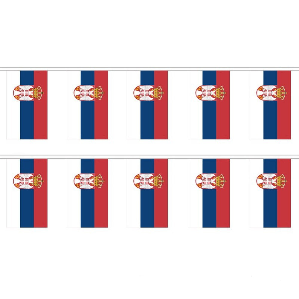 Scoprite questa ghirlanda composta da 20 mini bandiere della Serbia. Questa magnifica ghirlanda è un ottimo modo per decorare la vostra casa o preparare un evento. La ghirlanda misura 5 metri di lunghezza ed è composta da 20 mini bandiere. Ogni bandiera ha le dimensioni di 14 x 21 cm. Le bandiere sono fatte con materiali di alta qualità, quindi potete essere certi che questa ghirlanda durerà per anni. Mostra il tuo sostegno per la Serbia con questa magnifica ghirlanda di bandiere oggi stesso!
