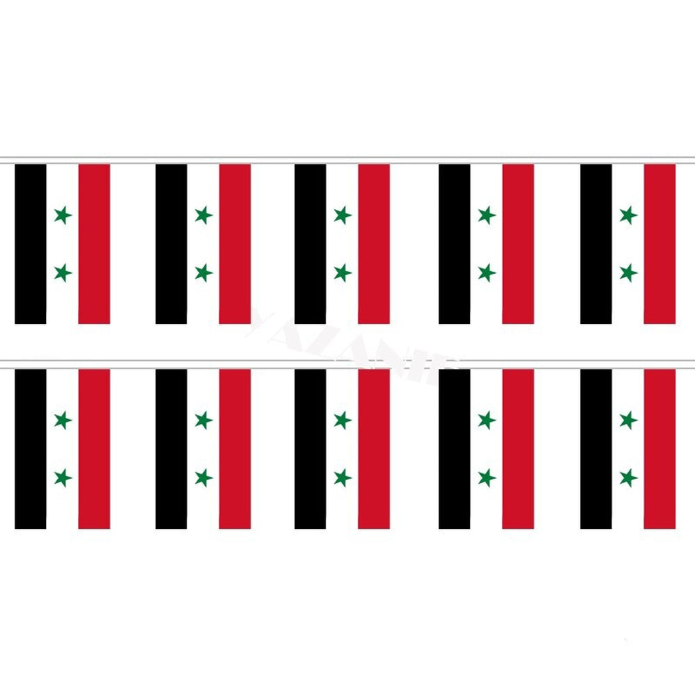 Scopri questa ghirlanda composta da 20 mini bandiere della Siria. Questa magnifica ghirlanda è un ottimo modo per decorare la tua casa o preparare un evento. La ghirlanda misura 5 metri di lunghezza ed è composta da 20 mini bandiere. Ogni bandiera ha le dimensioni di 14 x 21 cm. Le bandiere sono realizzate con materiali di alta qualità, quindi puoi essere sicuro che questa ghirlanda durerà per anni. Mostra il tuo sostegno per la Siria con questa magnifica ghirlanda di bandiere oggi stesso!