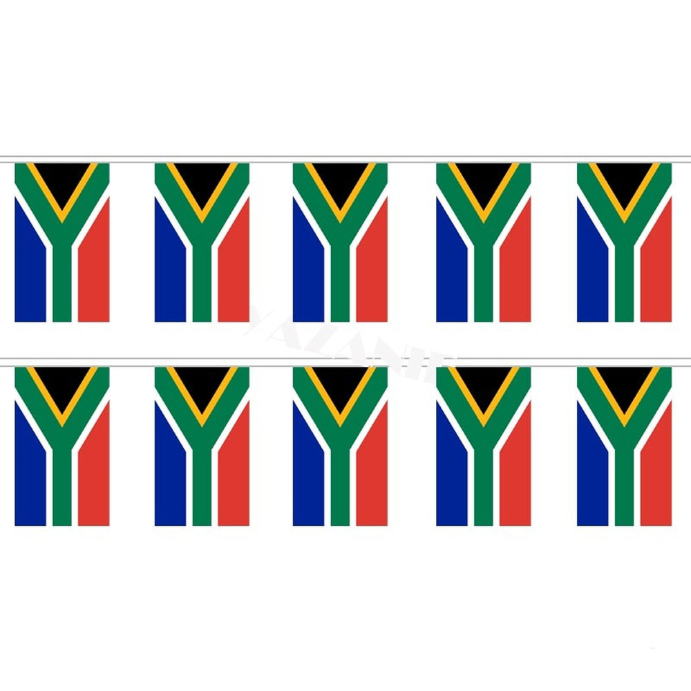 Scopri questa ghirlanda composta da 20 mini bandiere del Sud Africa. Questa magnifica ghirlanda è un ottimo modo per decorare la tua casa o preparare un evento. La ghirlanda misura 5 metri di lunghezza ed è composta da 20 mini bandiere. Ogni bandiera ha dimensioni di 14 x 21 cm. Le bandiere sono realizzate con materiali di alta qualità, quindi puoi essere sicuro che questa ghirlanda durerà per anni. Mostra il tuo sostegno per il Sud Africa con questa magnifica ghirlanda di bandiere oggi!